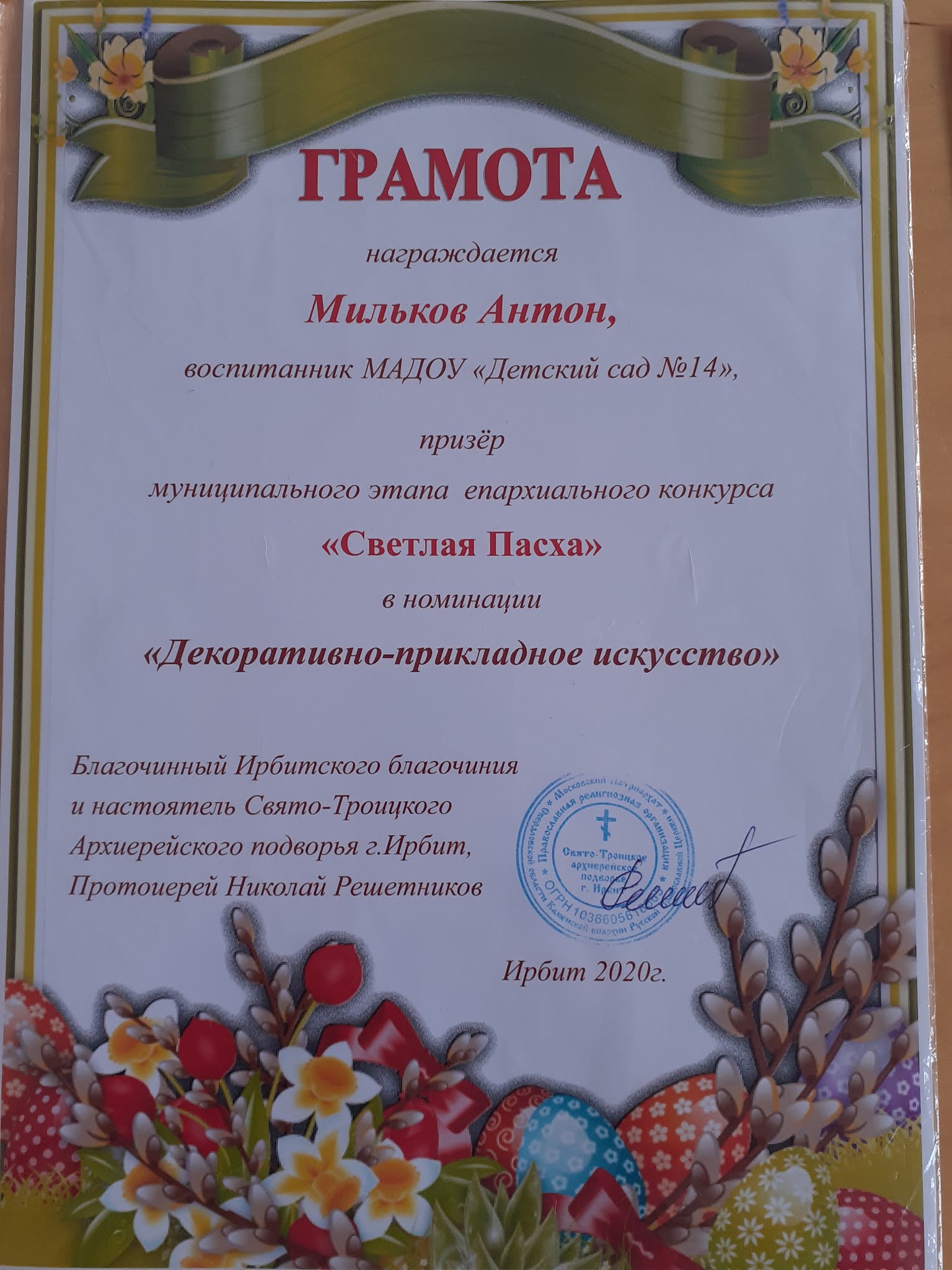 Аширов Иван - призер муниципального этапа епархиального конкурса "Светлая пасха"